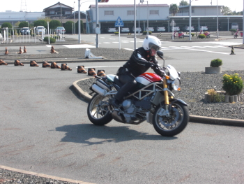 10月19日に当校の場内コースにてバイク(DUCATI)の試乗会が