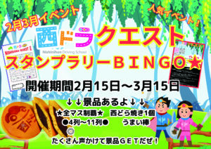 « 前の記事:2月・3月のイベント「西ドラクエスト」★全マス制覇!★